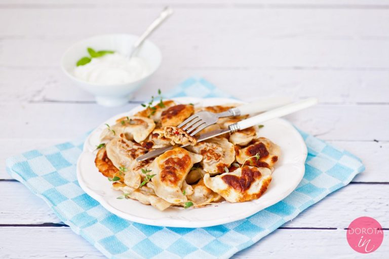 Poeksperymentujcie z ulubionymi dodatkami: można pominąć żółty ser i dodać fetę lub serek pleśniowy. W mniej tłustej wersji polecam chudy twarożek, a śmietankę możecie zastąpić jogurtem, jeśli bliżej Wam do lżejszych receptur. Wychodząc z założenia, że na co dzień jemy potrawy nietłuste i lekkie, raz na jakiś czas można pozwolić sobie na odstępstwo od reguły, zrobić pierogi z mięsem i nawet usmażyć je następnego dnia, chociaż te gotowane mniej obciążą żołądek i nie nasiąkną niepotrzebnie dodatkowym tłuszczem. Pamiętajcie tylko, żeby w takiej formie nie jeść ich codziennie, bo nie tędy droga do zróżnicowanej i sprzyjającej zdrowiu, dobremu samopoczuciu i ładnej sylwetce diety droga :).
