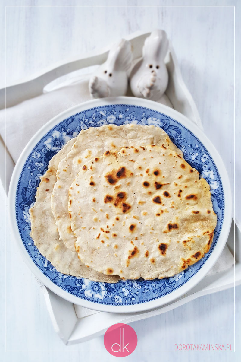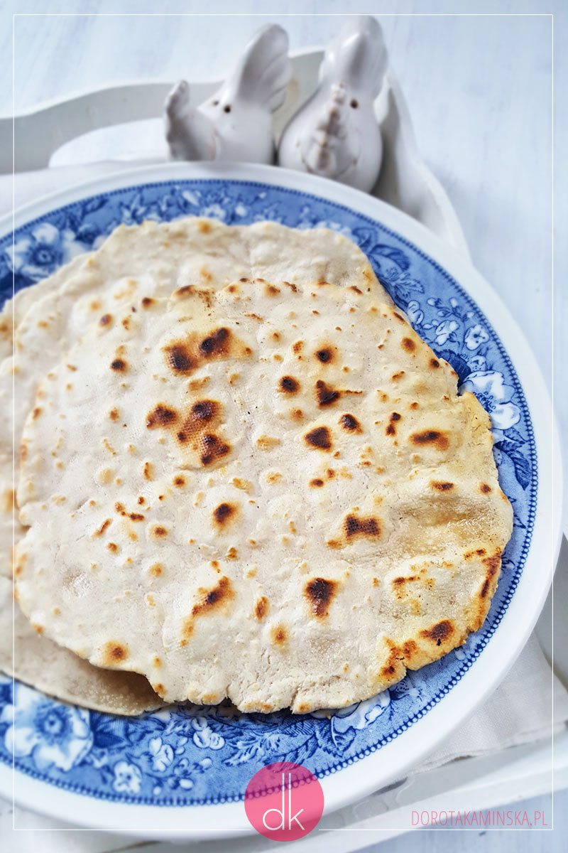 Można też oczywiście zrobić je bez zakwasu. Wystarczy mieszanka mąki pszennej, wody i soli. Zagniecione ciasto zaparzane, które najpierw leżakowało w folii, jest potem bardzo elastyczne i można formować z niego łatwo placki. Najprościej jest zrobić je na patelni o nieprzywierającej powłoce lub takiej żeliwnej. Tę drugą, ewentualnie, trzeba będzie odrobinę naoliwić.