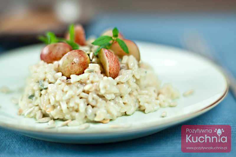- Risotto podaję gorące, udekorowane słonecznikiem i winogron