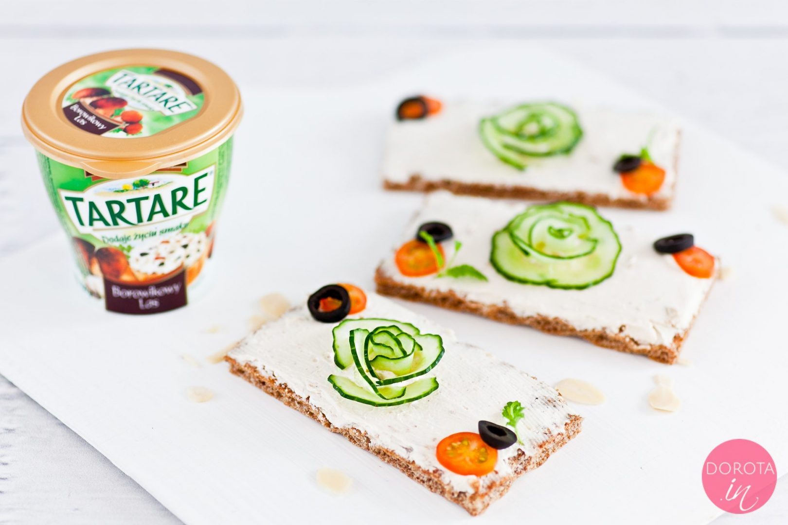 Oto prosty sposób na piękną i elegancką dekorację, którą możecie wykorzystać, przygotowując sałatki na specjalne okazje lub przekąski w formie kanapek. Moja propozycja to kanapka FIT z Borowikowego Lasu, na której róża z ogórka, bo o tej dekoracji mowa, utrzymuje się dzięki warstwie kremowego serka. A sama kanapeczka to propozycja dietetycznej przekąski, przygotowana z pełnoziarnistego, chrupkiego pieczywa żytniego.