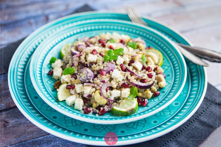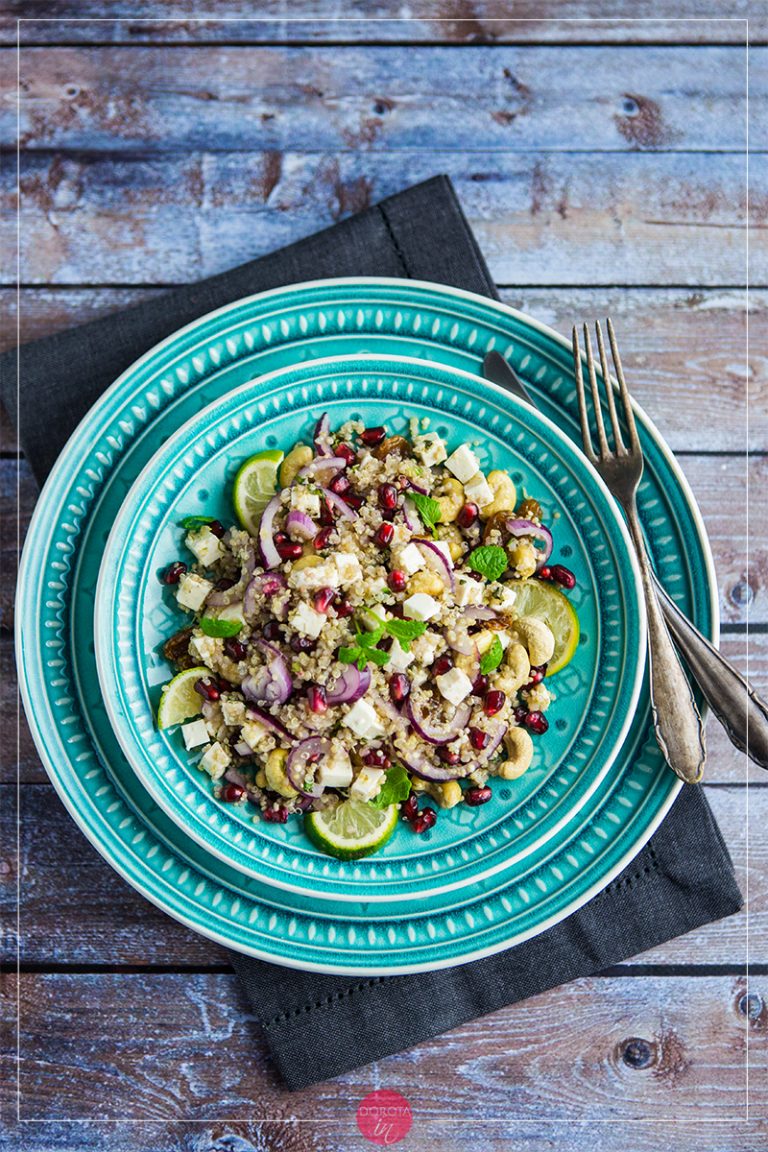 Moje pierwsze podejście do sałatek z quinoa rozpoczęło się kilka lat temu w niedużym bistro gdzieś w Warszawie. Czekając na spotkanie z koleżanką z dawnych lat, zamówiłam porcję, która wyglądała apetycznie i zachęcała: „zjedz mnie” zza szyby przy barze. Sałatka z komosy ryżowej z granatem i natką pietruszki oraz czerwoną cebulą przypadła mi do gustu, a potem… zupełnie o niej zapomniałam.