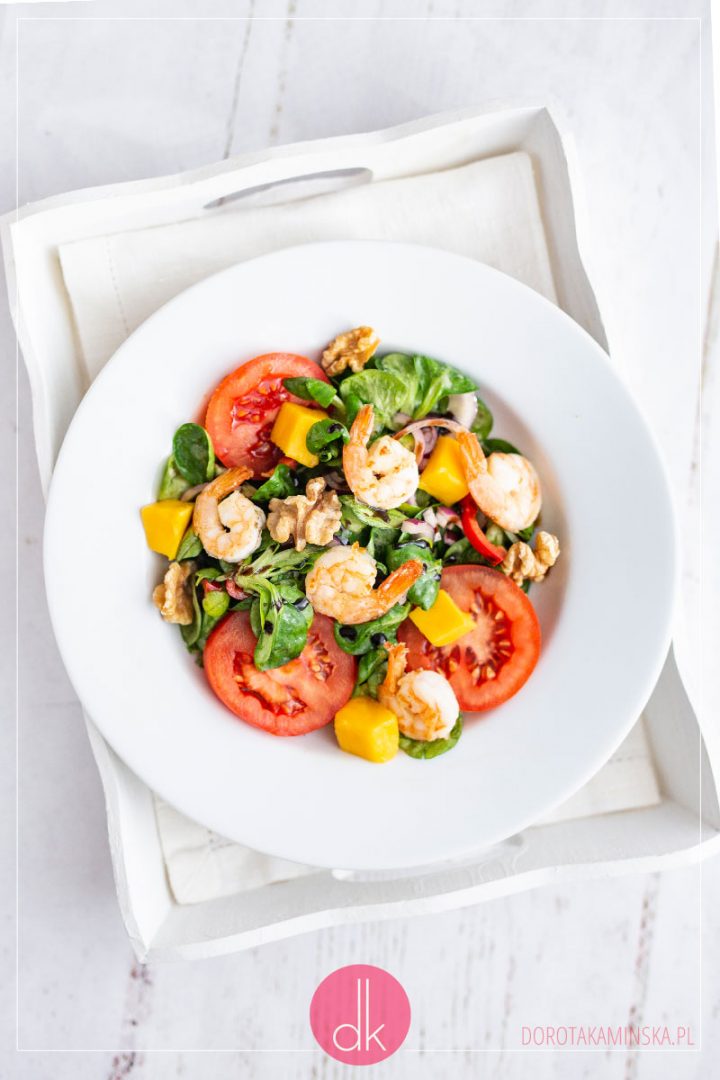 Jestem bardzo ciekawa, jak Wam wyjdzie smażenie krewetek i przygotowanie tej pysznej sałatki. Zobaczcie, jak elegancko się prezentuje!