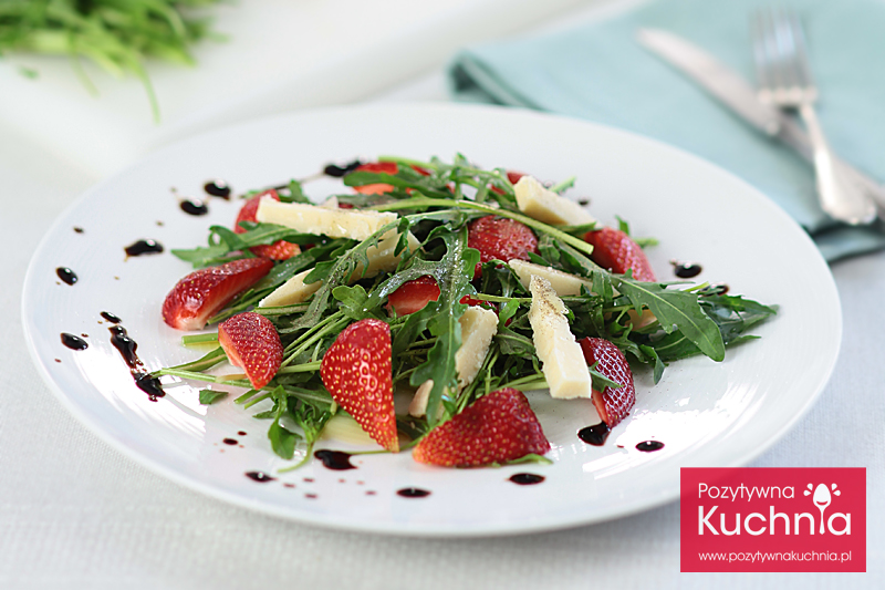 Wytrawnym truskawkom z octem balsamicznym dotrzyma towarzystwa dowolna sałata. Łącząc je z rukolą albo roszponką otrzymamy szybką i smaczną sałatkę, której smak i charakter wzbogaci dodatek świeżo pokrojonego, włoskiego parmezanu. Sałatka z truskawek z rukolą i parmezanem – idealne połączenie kilku prostych smaków.