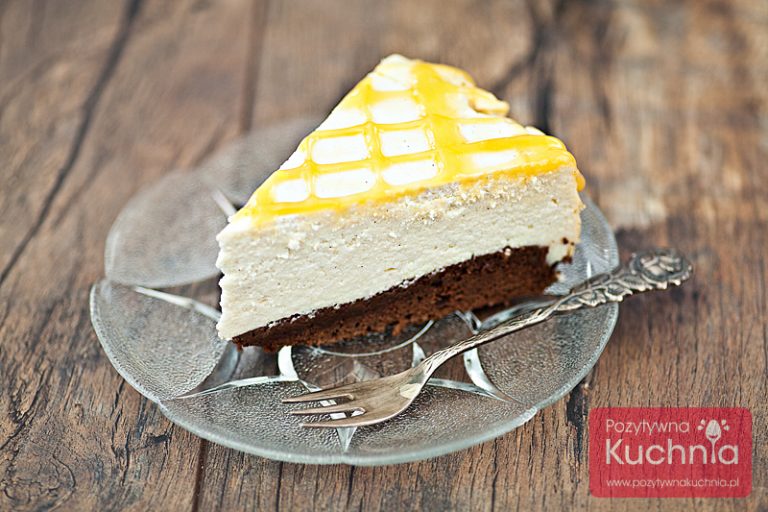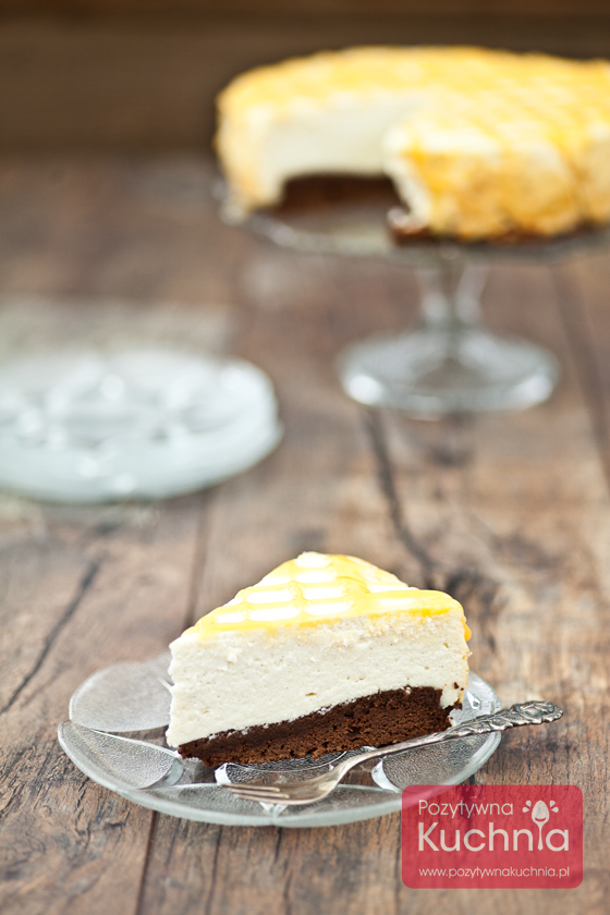 To bardzo smaczny, kremowy sernik z wanilią, a spód brownies wychodzi w nim lekko wilgotny, delikatny i słodki. Dlatego nie warto już kusić się o więcej i przygotowywać grubą, słodką warstwę polewy. Gorzka czekolada lub adwokat sprawdzą się najlepiej, a ciasto będzie elegancko prezentować się na paterze i zachęcać do skosztowania kolejnego kawałka.