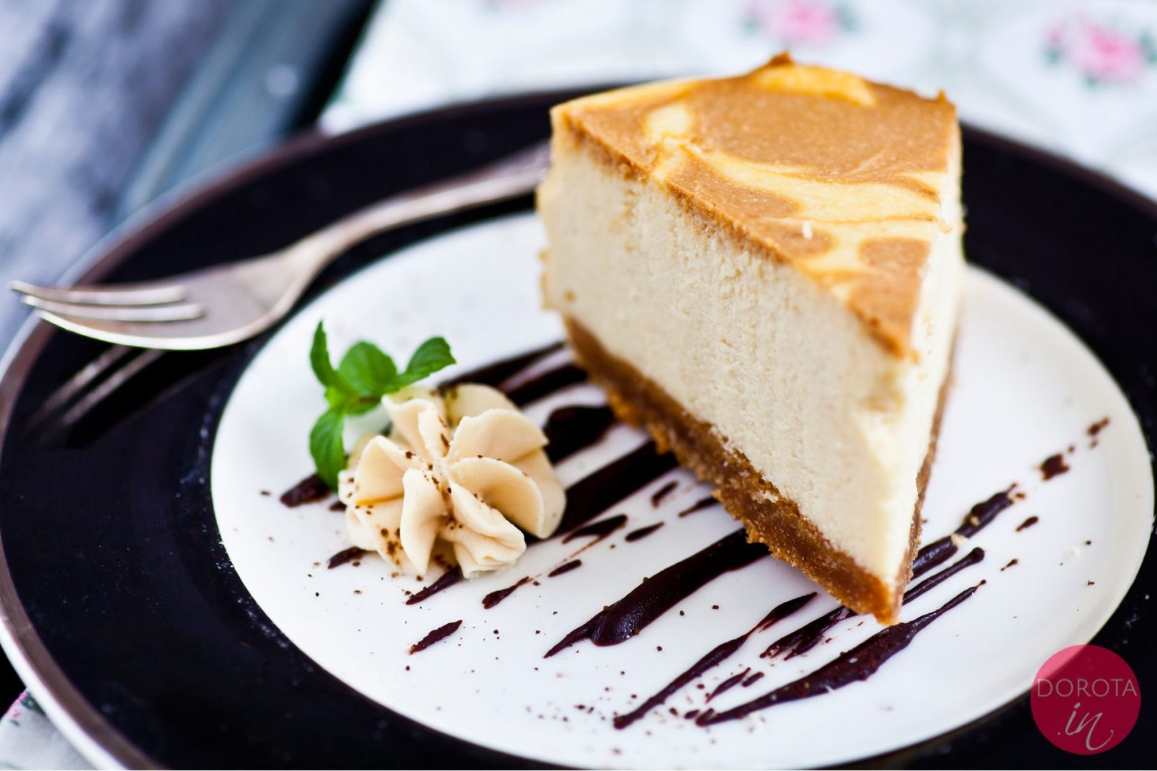 - Wstawiam sernik toffi do piekarnika nagrzanego do 150 °C (góra + dół) na 1 godzinę. Po tym czasie pozostawiam w zamkniętym, wyłączonym piekarniku na kolejną godzinę.