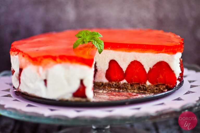 Proste, bo można je przygotować również gotowych ciasteczek, albo wykorzystać bezy, ale trochę czasochłonne ciasto – sernik z truskawkami na zimno, który cierpliwość i czas oczekiwania wynagrodzi po przekrojeniu, ukazując naszym oczom bardzo ładny, truskawkowy wzór. W sezonie na truskawki, obok klasycznego sernika na zimno z galaretką, do którego truskawki wkłada się pomiędzy masę serową, a wierzchnią warstwę galaretki, powinien choć raz zagościć na stole – czy to w domu, czy w ogródku, podany z listkiem świeżej mięty, dobrze schłodzony.