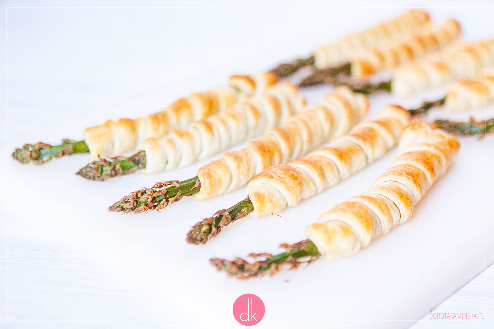 U mnie jest to najprostsza wersja: tylko szparagi i ciasto francuskie. Ale możecie np. połowę owinąć ciastem, a drugą połowę boczkiem lub szynką parmeńską. Albo pod ciasto zawinąć pokrojony w cienkie plasterki ser. To będzie cudowna niespodzianka, kiedy po przegryzieniu chrupiącego ciasta gości i domowników zaskoczy ciągnący ser! Możecie wykorzystać pleśniowy camembert lub brie, ale nie tylko. Zwykła gouda też się idealnie nada!