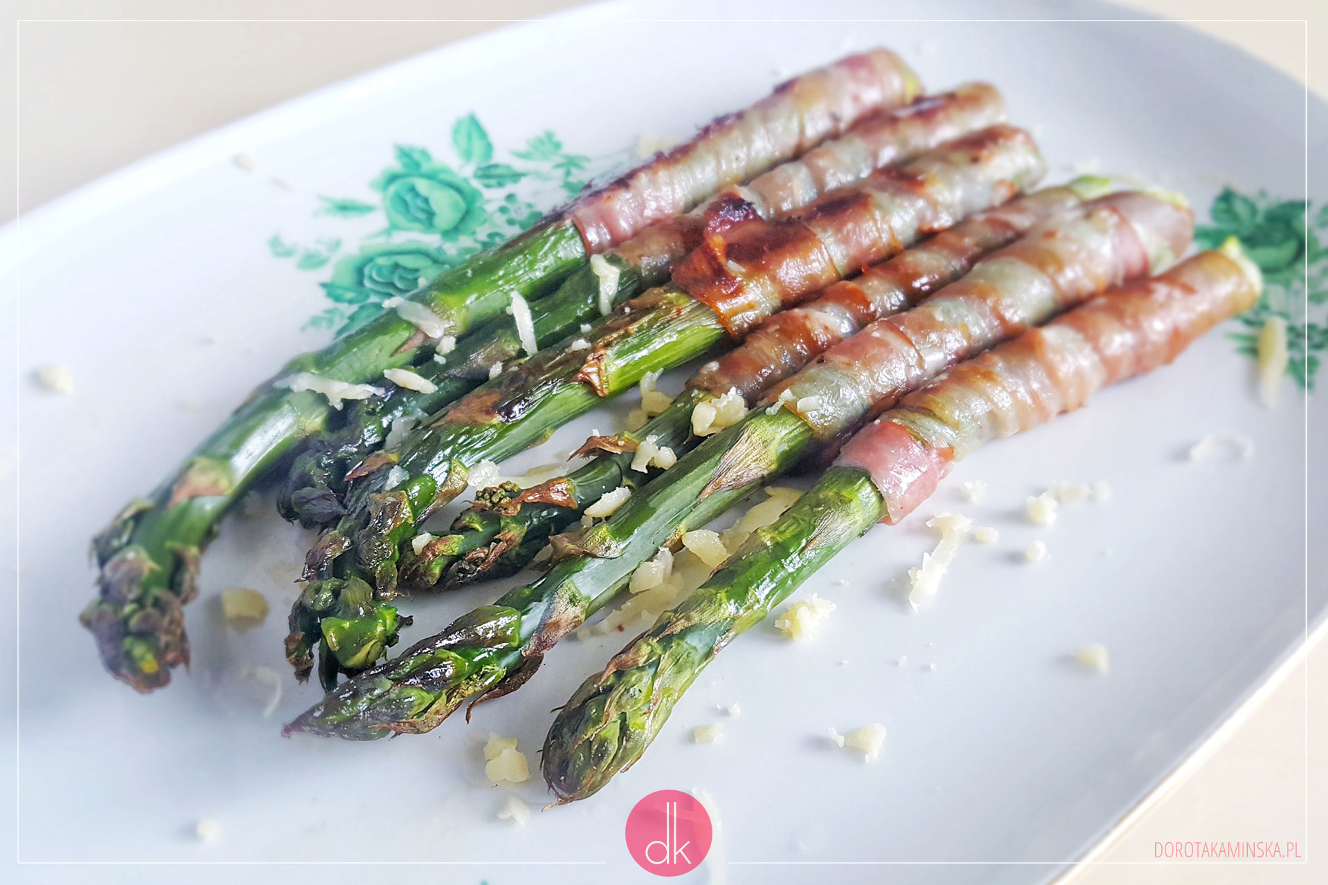 U mnie szparagi zawijane w boczku wylądowały w piekarniku. Można jednak byłoby zawinąć je w folię aluminiową i ugrillować na grillu. Nadają się też do usmażenia na patelni. Nawet bez dodatkowego tłuszczu, bo przecież z boczku wytopi się go w trakcie smażenia wystarczająco dużo. Potem można zaserwować je jako przekąskę na ciepło na imprezie. Z pewnością świetnie sprawdzą się również jako dodatek do głównych dań. Zwłaszcza do chudych, białych mięs, które skomponują się dobrze z boczkiem.