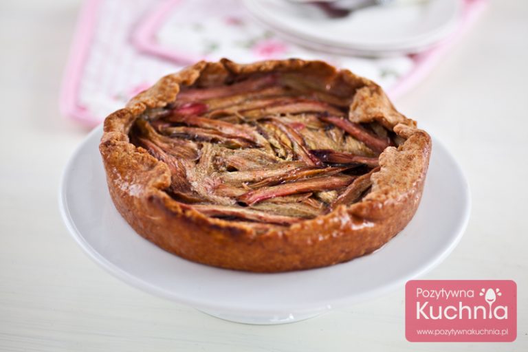 Jedna z pierwszych tart, jakie przygotowałam w swojej kulinarnej karierze i na pewno pierwsza tarta na Pozytywnej Kuchni, teraz w nieco odmienionej, udoskonalonej recepturze. To chyba najprostsza tarta z rabarbarem, bo nie trzeba specjalnie przesmażać jej nadzienia na patelni. Pokrojony w długie, cienkie paski rabarbar łatwo zmięknie podczas pieczenia, a przy okazji dekoracyjnie ułoży się w rozmaite wzorki, które, przy odrobinie wolnego czasu można uzupełnić ładnie zawiniętym brzegiem ciasta. W tempie ekspresowym, idąc za moim przykładem, proponuję delikatnie zagiąć rozwałkowane ciasto do środka, tworząc dość rustykalne wykończenie tego smakowitego, letniego deseru.