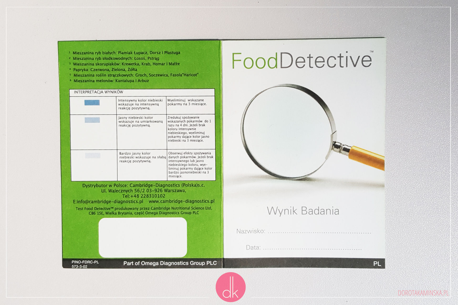 Badanie Food Detective jest metodą wykrywania we krwi przeciwciał klasy G dla składników pokarmowych. Pozwala jakościowo określić podniesiony poziom przeciwciał IgG specyficznych dla 59 pokarmów pogrupowanych na 46 polach. Wiele produktów to samodzielne pokarmy, ale już np. jajka nie są rozdzielone w teście na białko i żółtko, rośliny strączkowe i ryby również zestawiono w zbiorczych grupach. Z kolei osobno można sprawdzić nietolerancję na gluten oraz na pozostałe białka w pszenicy, życie i pszenicy durum, które znajdują się w oddzielnych polach.
