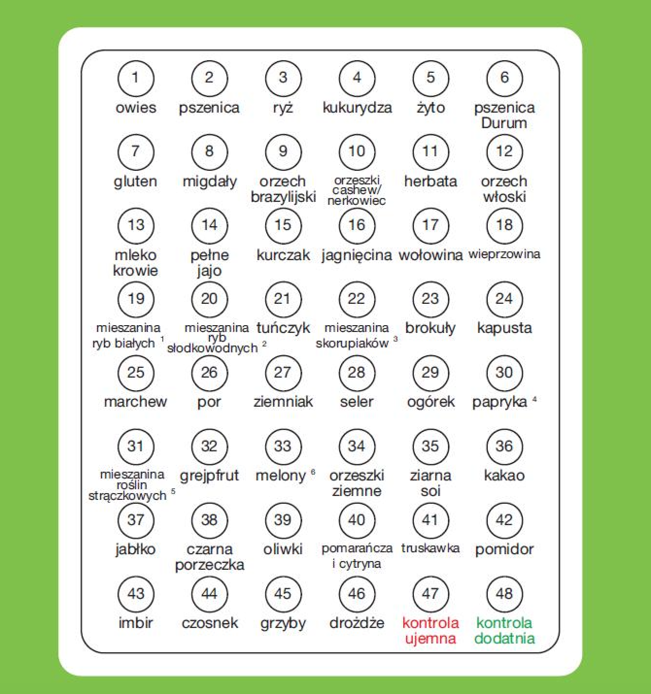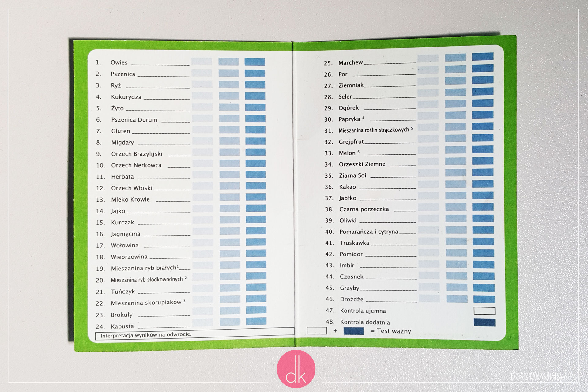 Z instrukcji można odczytać, które nietolerancje zostały wykazane na poszczególnych polach.