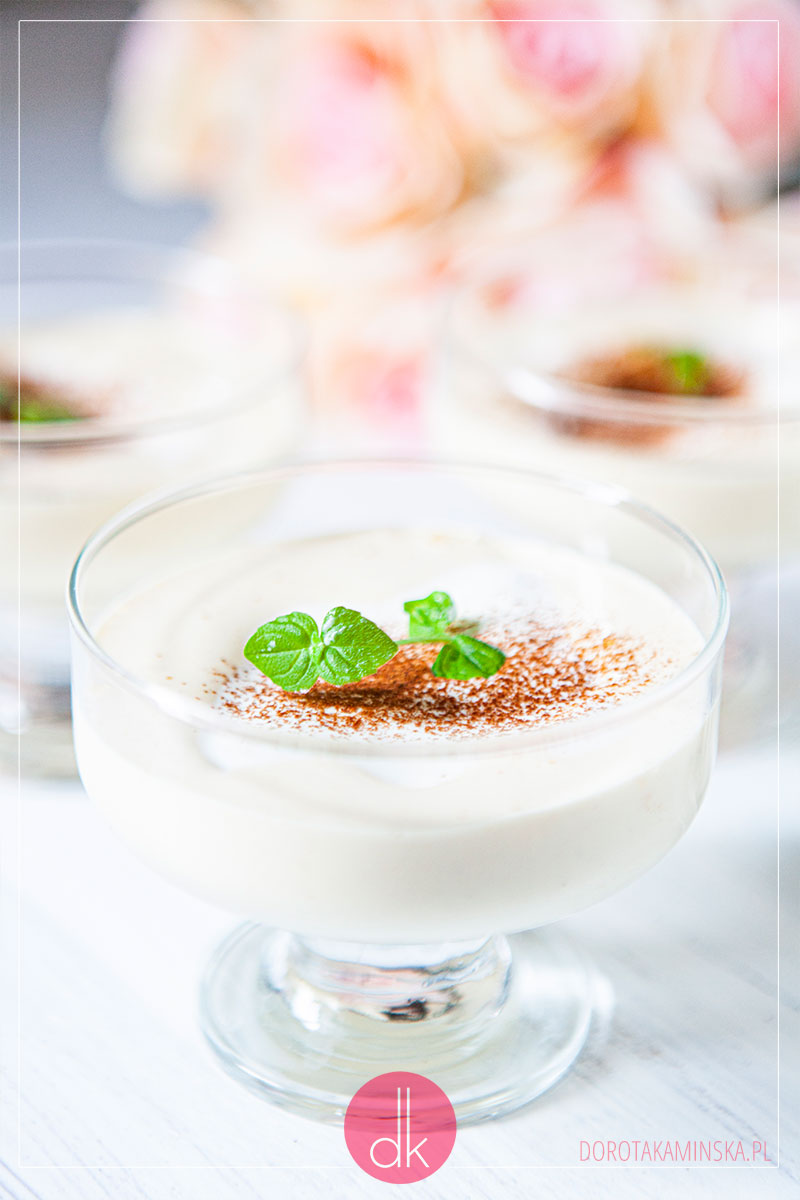 U mnie będzie skromna dekoracja. Miała być bita śmietana, ale 30%, pomimo schłodzenia, odmawiała dziś współpracy ;). Tyle, ile udało się ubić, wlałam na wierzch jajek i posypałam odrobiną cynamonu. Gdyby była sztywna, na pewno jej wierzch udekorowałabym dodatkowo kolorowymi owocami. A może właśnie taka skromniejsza wersja, z listkiem mięty, jest według Was lepsza? Jak myślicie?