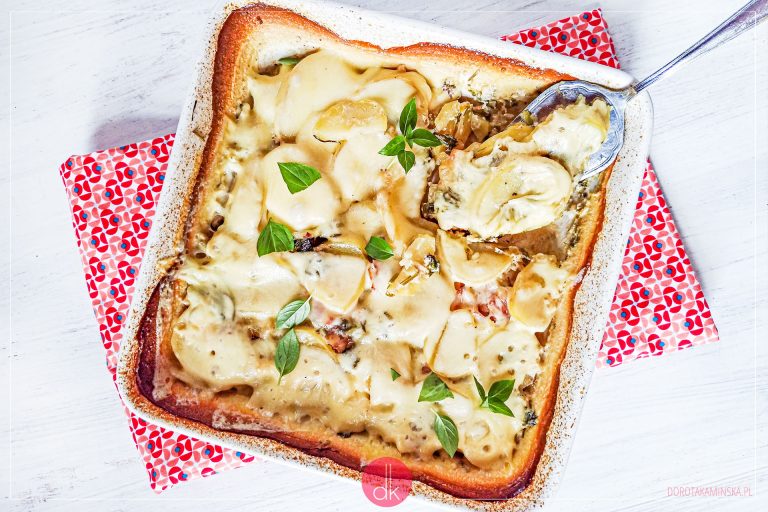 Zapiekanka z ziemniaków z boczkiem lub bez boczku