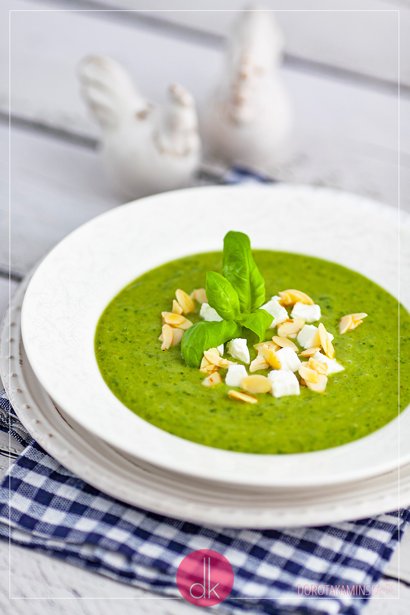 Zielona zupa ze szpinaku z serem feta i migdałami powstała po próbie połączenia dwóch sprawdzonych, pasujących do siebie składników. Znane z innych potraw, również i w zupie sprawdziło się świetnie. To tylko kilka składników i oczywiście bazowy wywar warzywny, który zawsze mam zamrożony na zapas. Obiad w sam raz w pochmurne dni, choć najlepiej będzie smakować latem, w pełni sezonu.